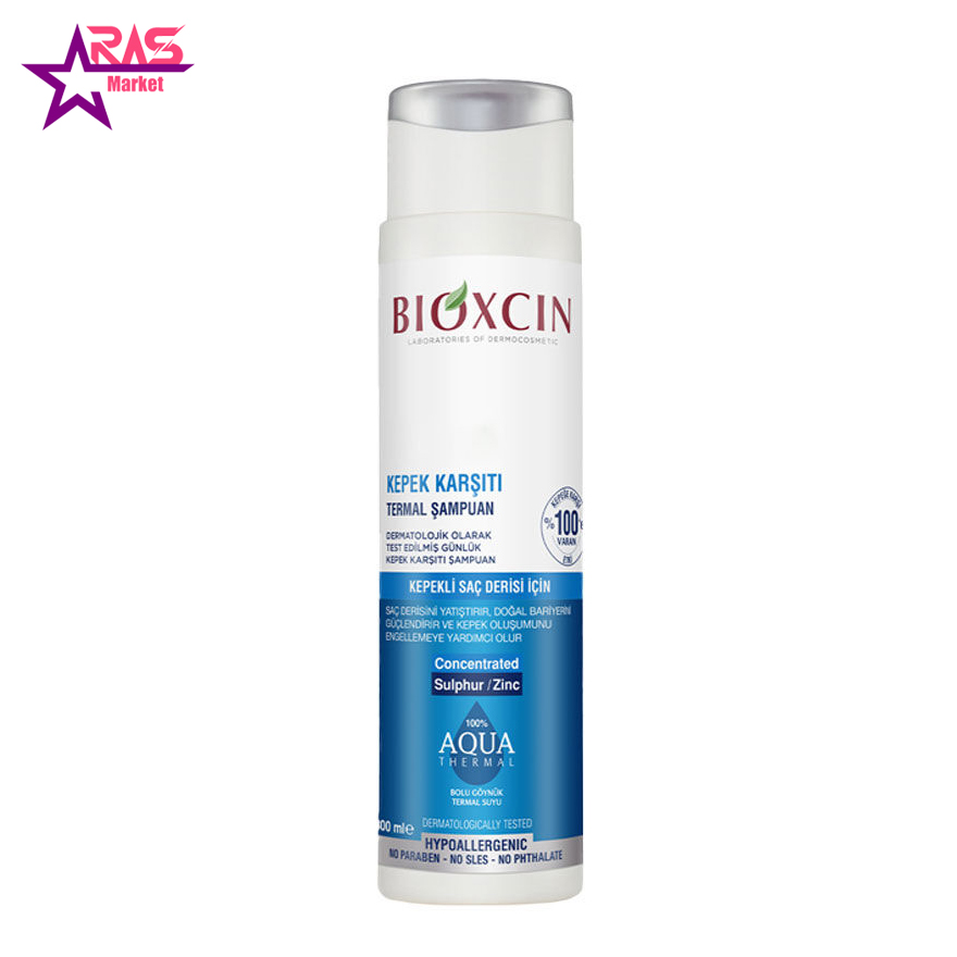 شامپو بیوکسین ضد شوره سر روزانه مدل Aqua Thermal مناسب انواع مو 300 میلی لیتر ( Bioxcin Aqua Thermal Anti-Dandruff Shampoo ) محصولی بسیار با کیفیت و کاربردی و موثر در جهت رفع کامل شوره سر و همچنین پیشگیری از بروز سوره سر از برند تخصصی بیوکسین ترکیه می باشد. این محصول فوق العاده با کیفیت هر چه تمام تر چربی ها و آلودگی ها را از موها و کف سر پاک نموده و تمیزی را برای موها به ارمغان می آورد. این شامپوی ضد شوره فوق العاده دارای فرمولاسیونی پیشرفته و غنی از مواد مفید برای موها از جمله زینک و سولفور است و استفاده مداوم و منظم از آن، مقاومت لایه دفاعی پوست کف سر را بخوبی افزایش می دهد.