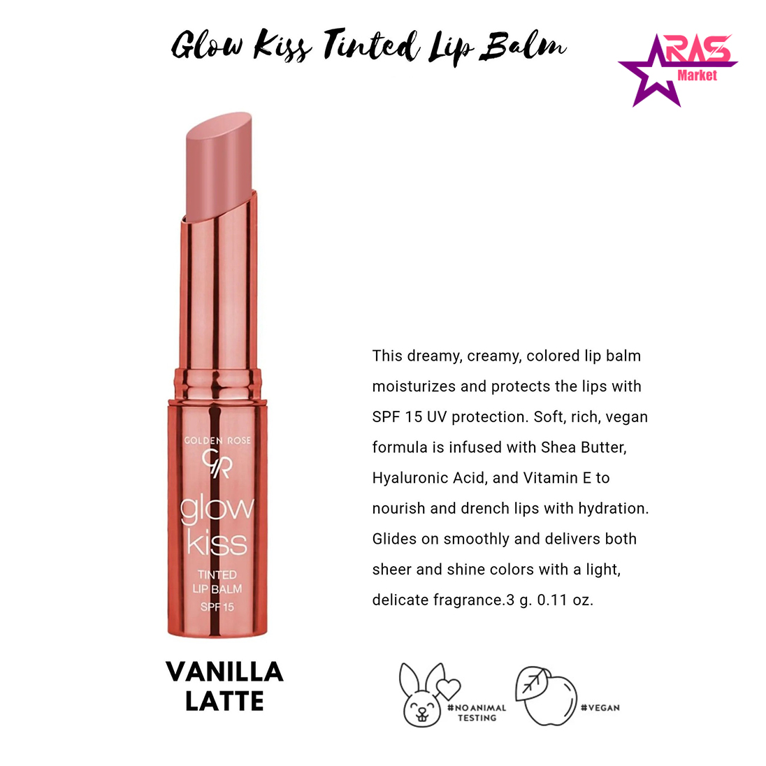 بالم لب رنگی گلدن رز شماره 01 با SPF15 سری Glow Kiss رنگ Vanilla Latte