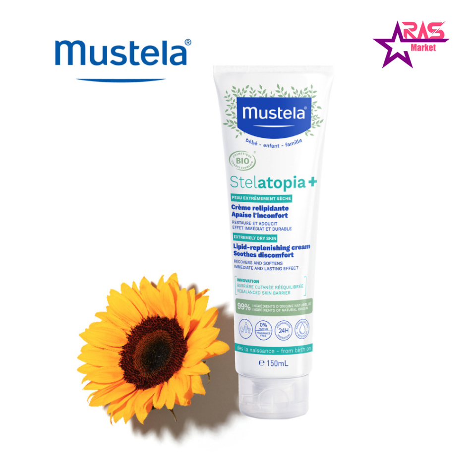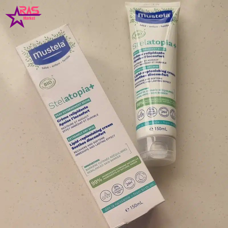 کرم مرطوب کننده موستلا مدل Stelatopia+ ضد اگزما و ضد خارش مناسب پوست های خیلی خشک و حساس 150 میلی لیتر ( MUSTELA Stelatopia+ Lipid-Replenishing Anti-Itching Cream ) محصولی جدید، تخصصی و دارای عملکرد فوق العاده در جهت رفع خشکی، حساسیت، التهاب، خارش و اگزمای پوست های خیلی خشک و مستعد حساسیت قابل استفاده برای پوست حساس و لطیف نوزادان از بدو تولد و نیز بزرگسالان از برند حرفه ای و با سابقه موستلا فرانسه می باشد. استفاده از کرم استلاتوپیا پلاس موستلا موجب می شود که پوست خشک و تحریک شده و ملتهب تا حد زیادی التیام پیدا کند و پوست رفته رفته طراوت، لطافت و شادابی خود را بازیابد. در واقع، این محصول یک کرم ضد اگزما و ضد التهاب فوق العاده است که از تحریکات پوستی جلوگیری نموده و ضد خارش و ضد آلرژیک می باشد. این محصول، تسکین دهنده قرمزی و التهاب پوست و نرم کننده و طراوت بخش پوست است.